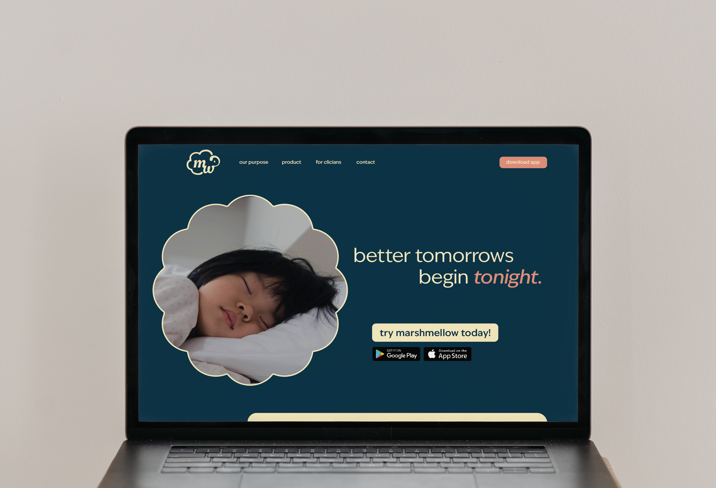 "marshmellow," formerly "SWAPP" is a sleep tracker for children with neurodivergence, their families, and medical professionals. This project started from a data dump provided by the client, followed by the creation of their positioning — their beliefs, brand voice, and visuals.